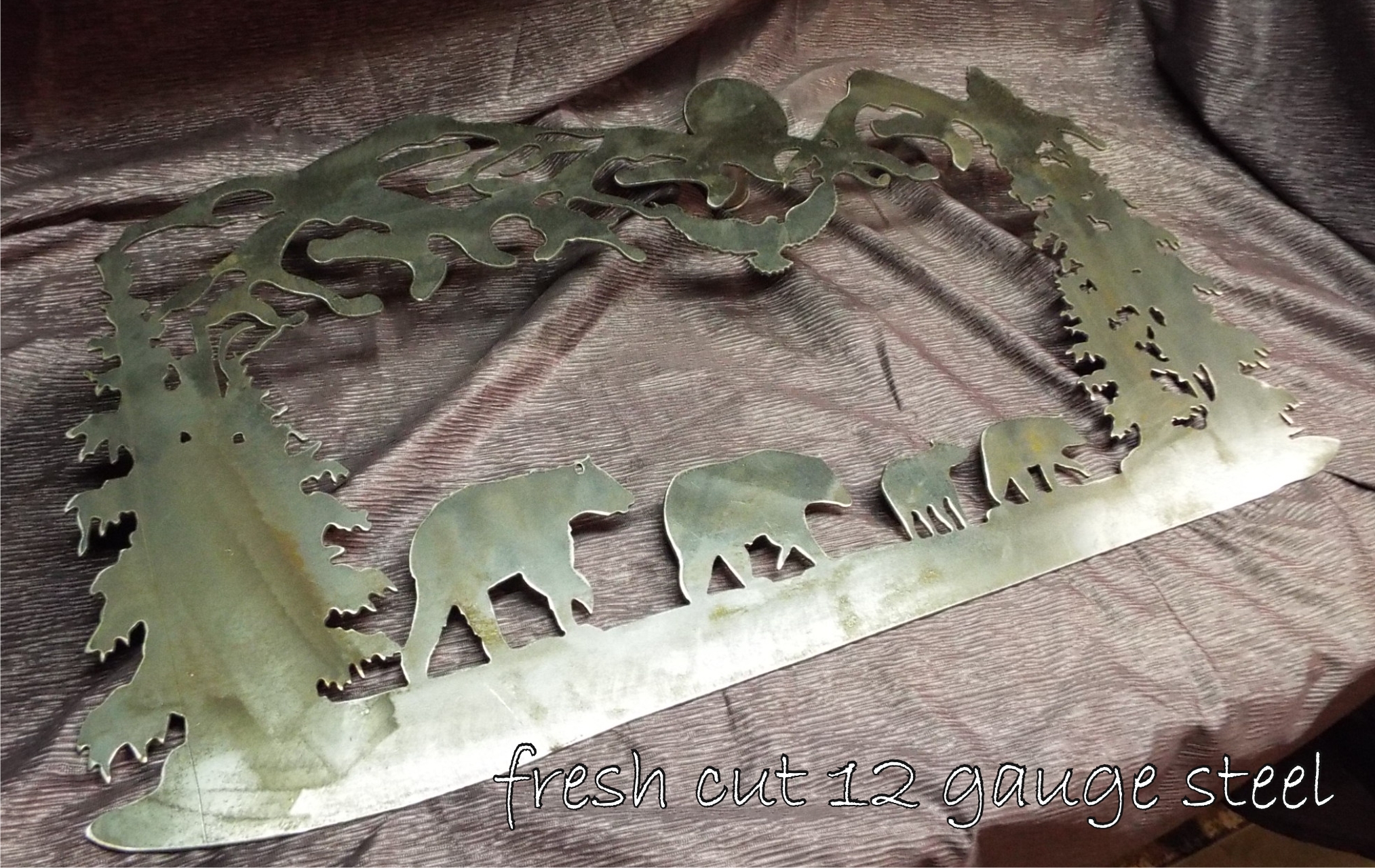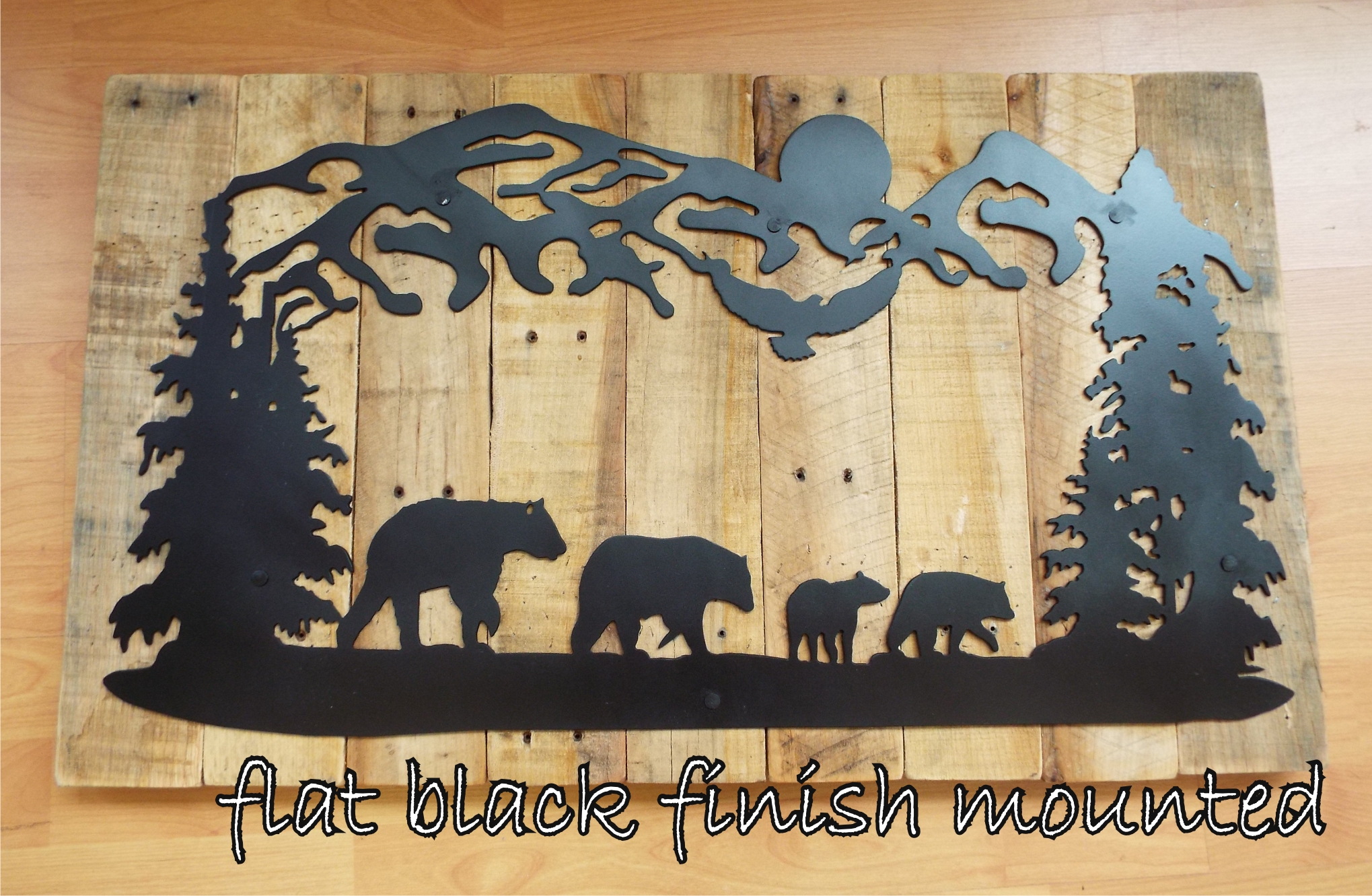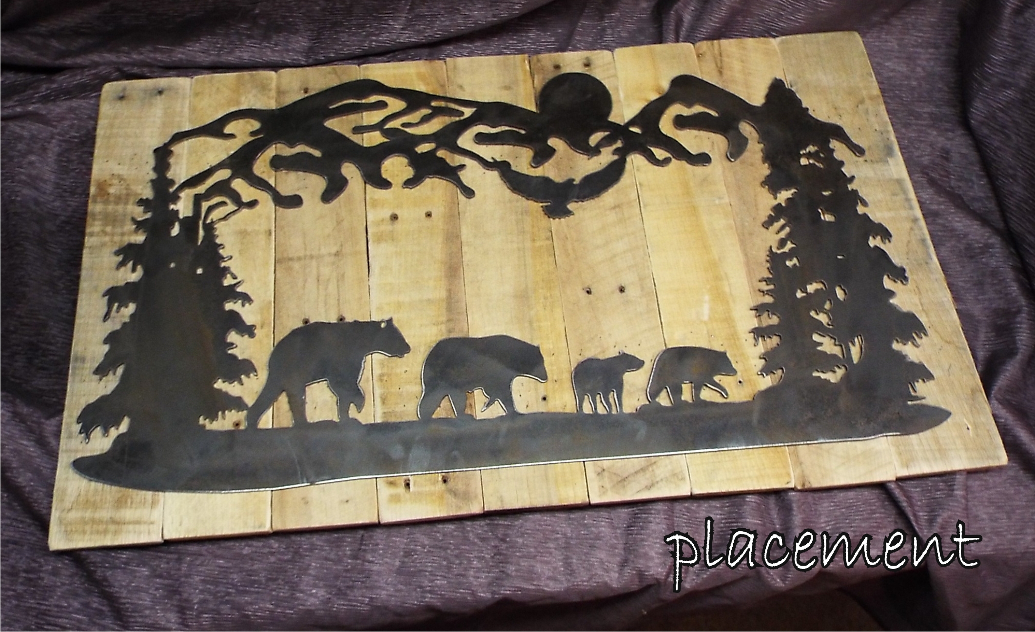 Bears and Cubs | Custom drawn metal scene with reclaimed wood backdrop.